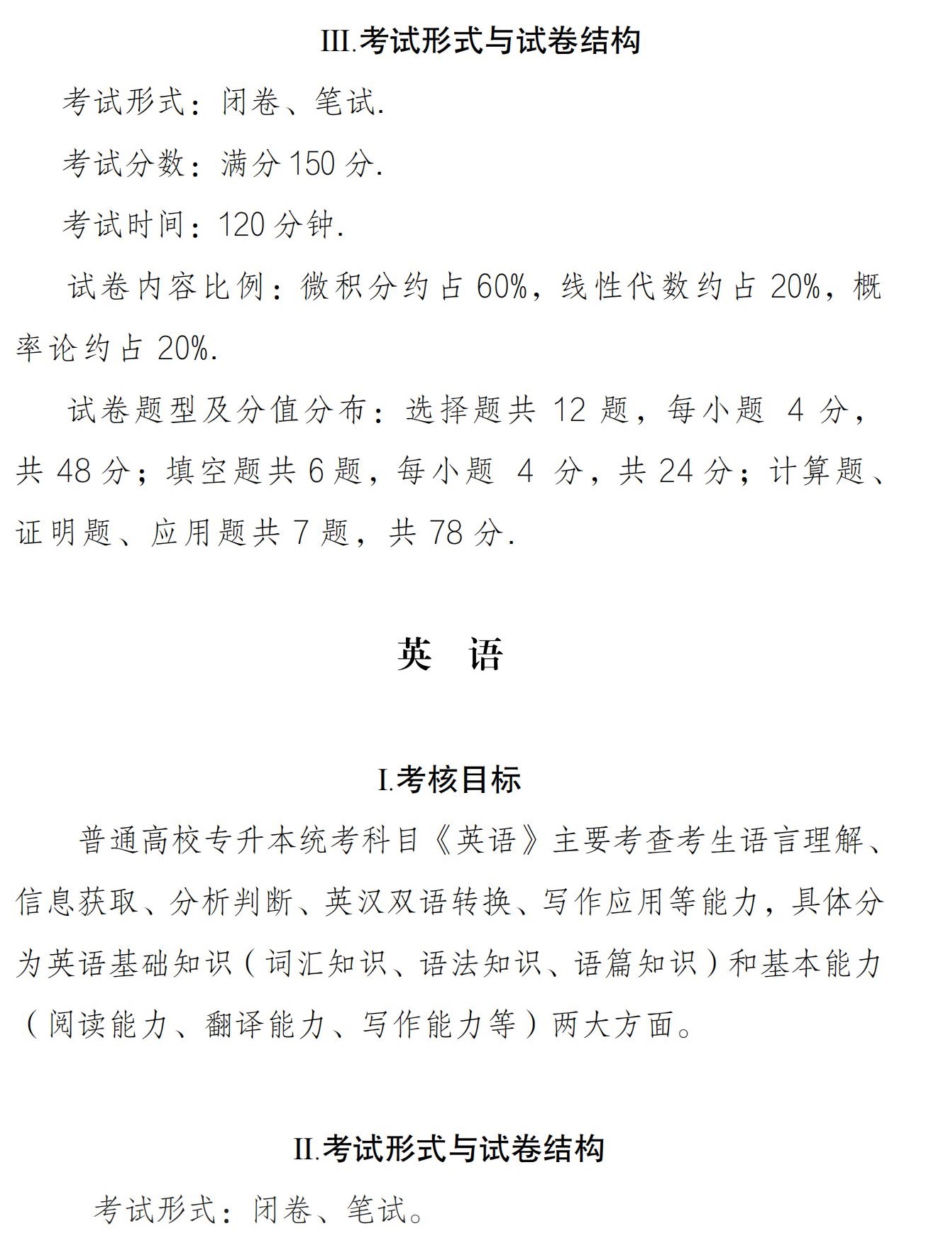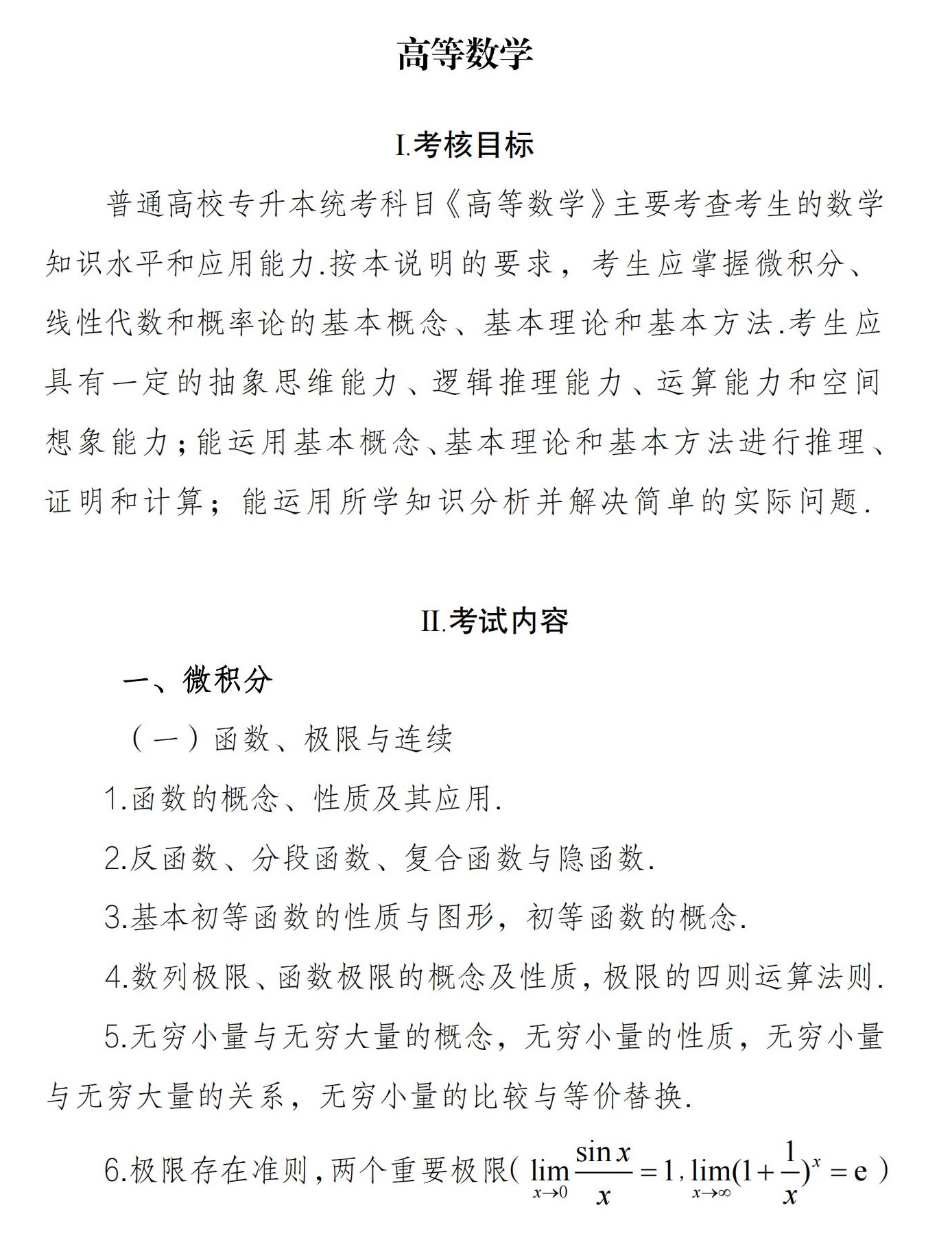 為便于考生復(fù)習(xí)迎考,現(xiàn)對(duì)安徽省普通高校專升本公共課高等數(shù)學(xué)考試的內(nèi)容要求和試卷結(jié)構(gòu)形式等分別做如下說明。