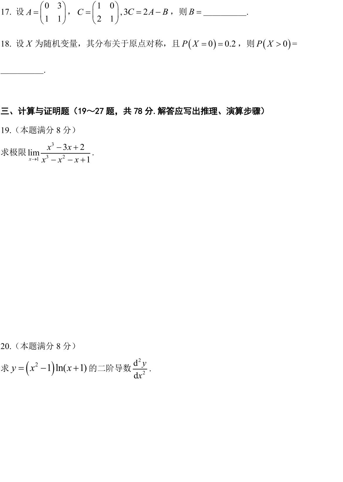 安徽省2020年普通高等學(xué)校專升本招生考試高等數(shù)學(xué)試卷_02
