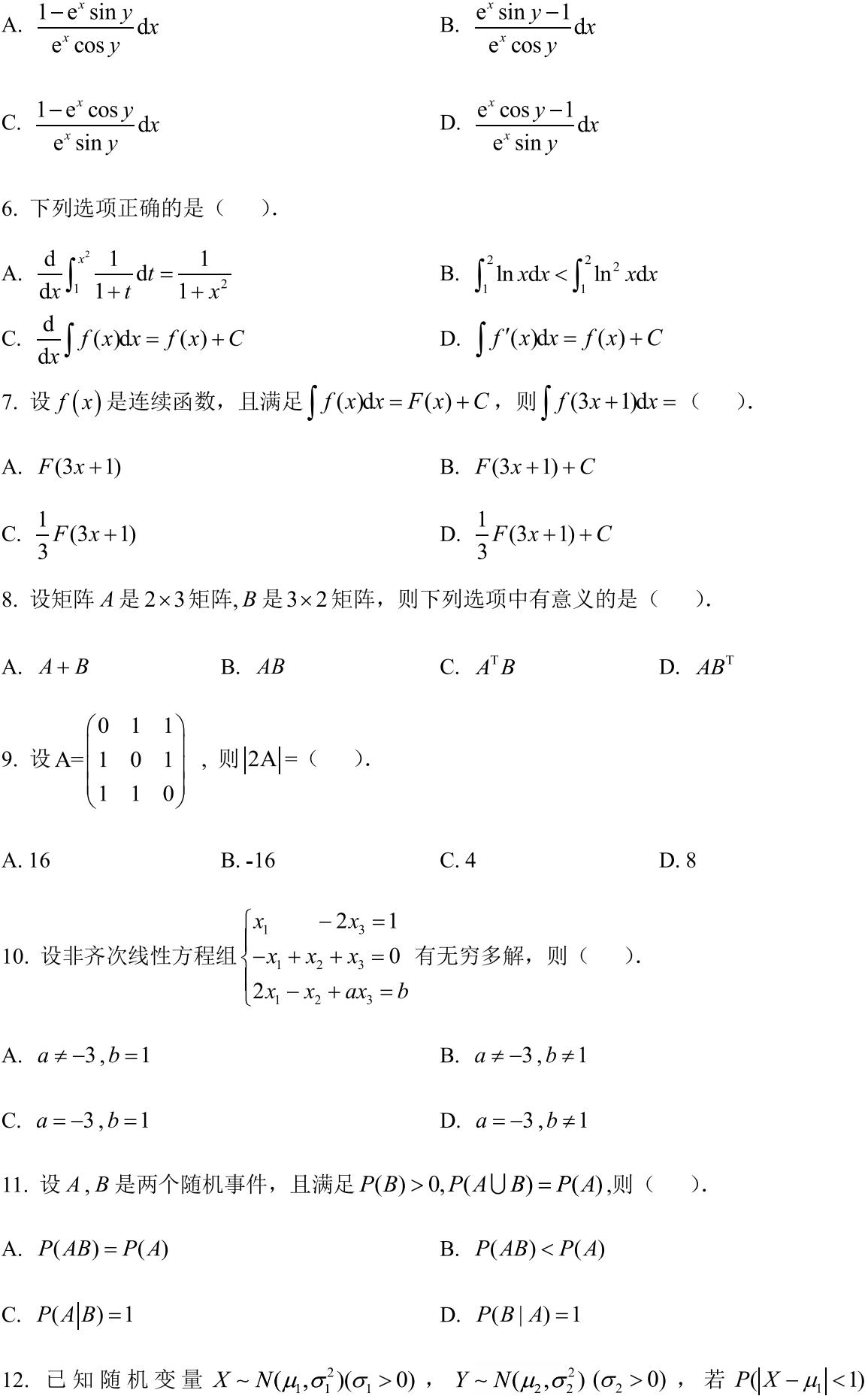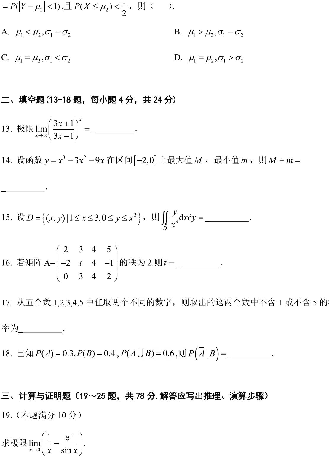 安徽省2022年普通高等學(xué)校專升本招生考試高等數(shù)學(xué)試卷