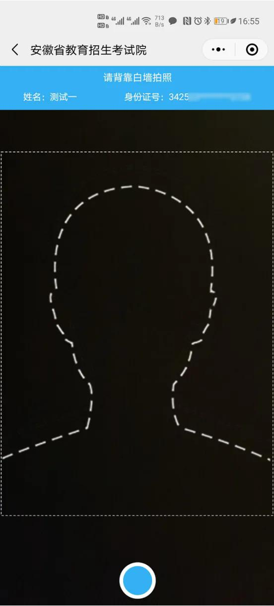 確保臉部充滿整個(gè)虛線框,手機(jī)攝像頭與眼睛在同一水平線,不仰頭,不低頭。