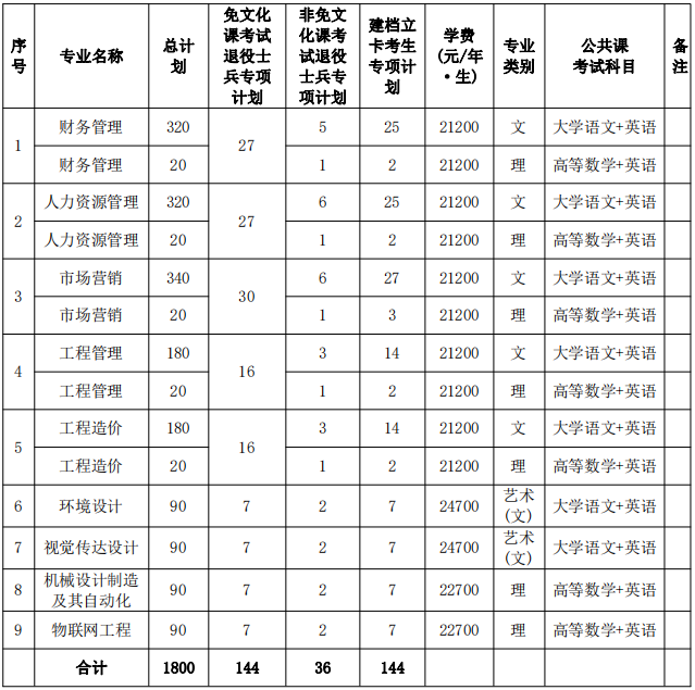 (2)免文化課考試退役士兵專項計劃文理兼招。