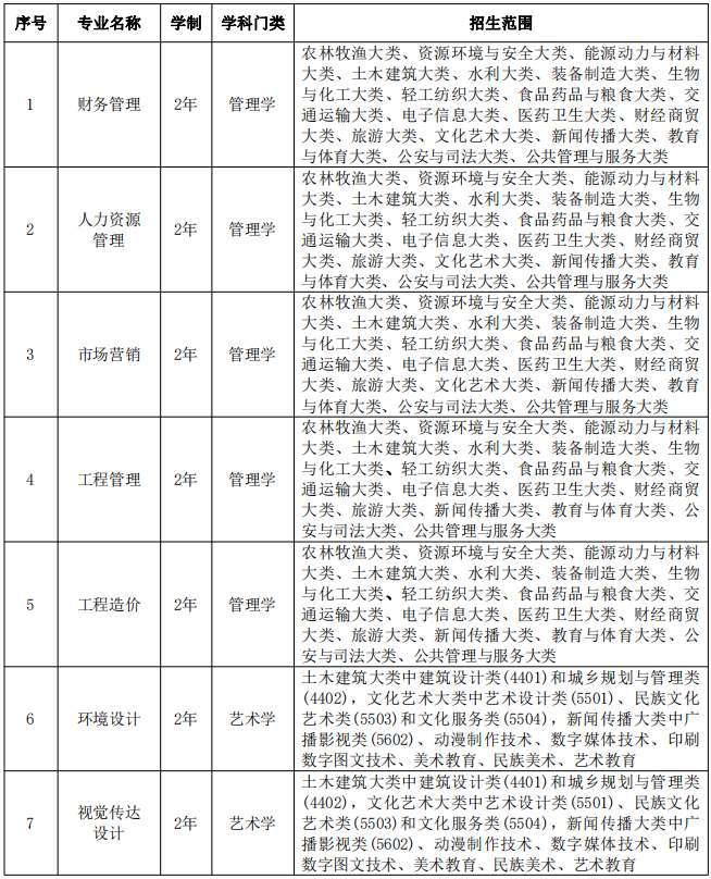 (1)所有專業(yè)學制均為2年;