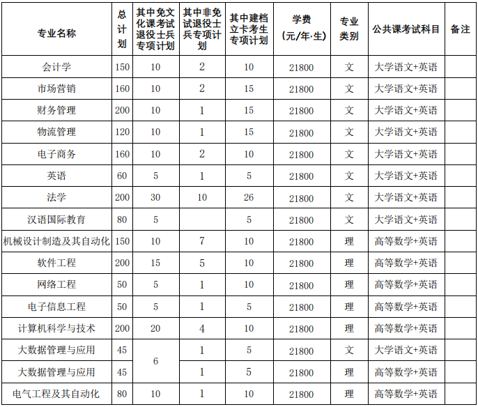 (2)免文化課考試退役士兵專項(xiàng)計(jì)劃文理兼招。