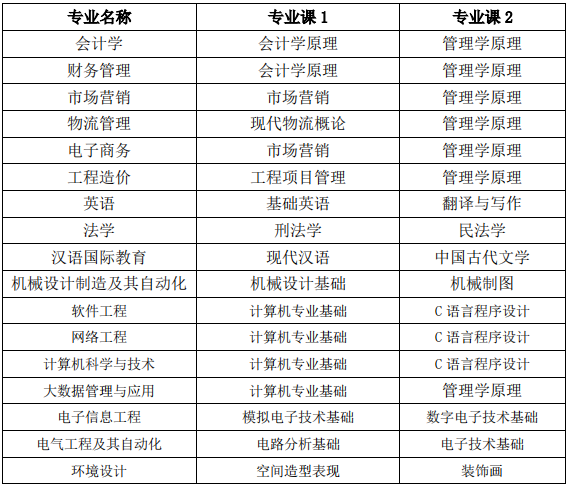 公共課:按照《安徽省2024年普通高校專升本考試招生工作操作辦法》文件執(zhí)行。