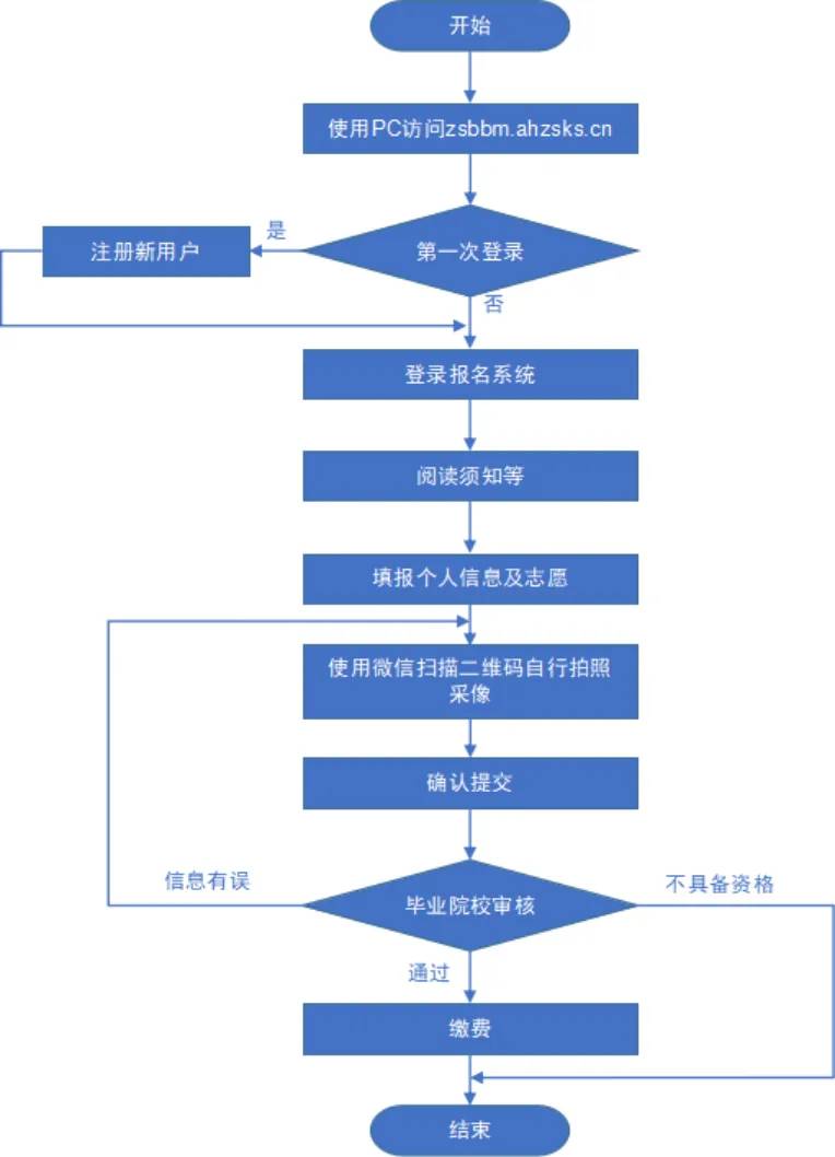 4.請關(guān)注省考試院網(wǎng)站(www.ahzsks.cn)和微信公眾號,及時獲取與普通高校專升本考試招生相關(guān)的通知等。完成報名后,務(wù)必隨時關(guān)注微信小程序“安徽招生考試”,及時了解自己的審核狀態(tài)、繳費狀態(tài)等,以免錯過操作時間。未及時更正信息提交重新審核、未按時完成繳費的,遺留問題由考生本人負責。
