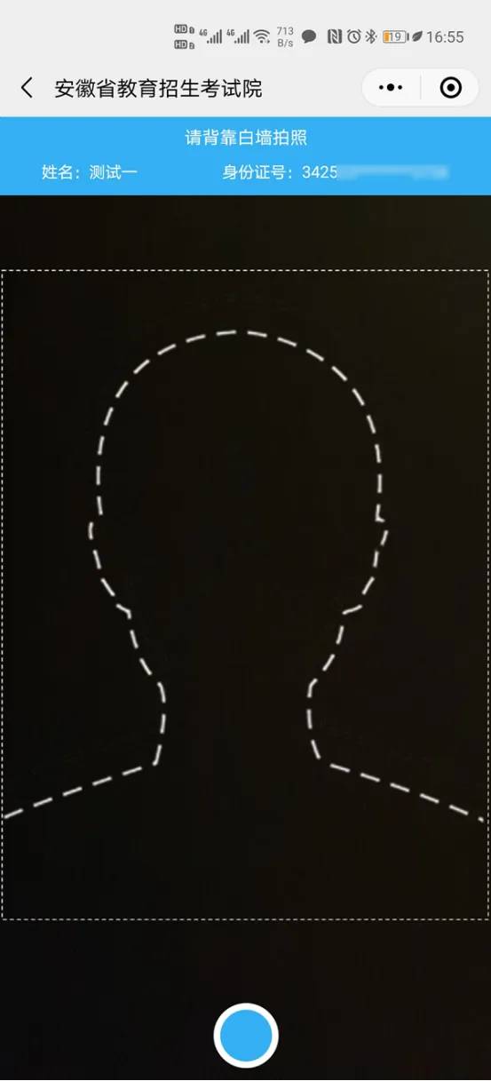 確保臉部充滿整個虛線框,手機攝像頭與眼睛在同一水平線,不仰頭,不低頭。
