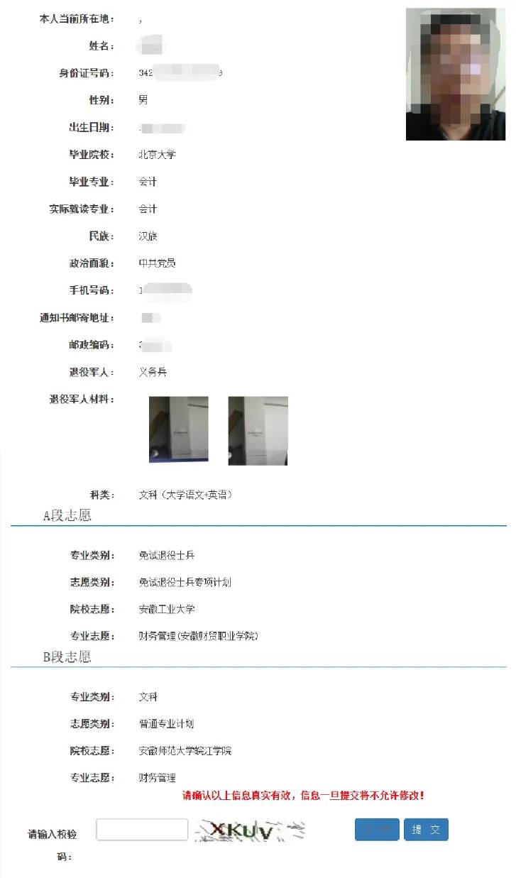 考生對自己填報信息的準確性、真實性負責,信息一旦提交,將不能修改,務(wù)必慎重!