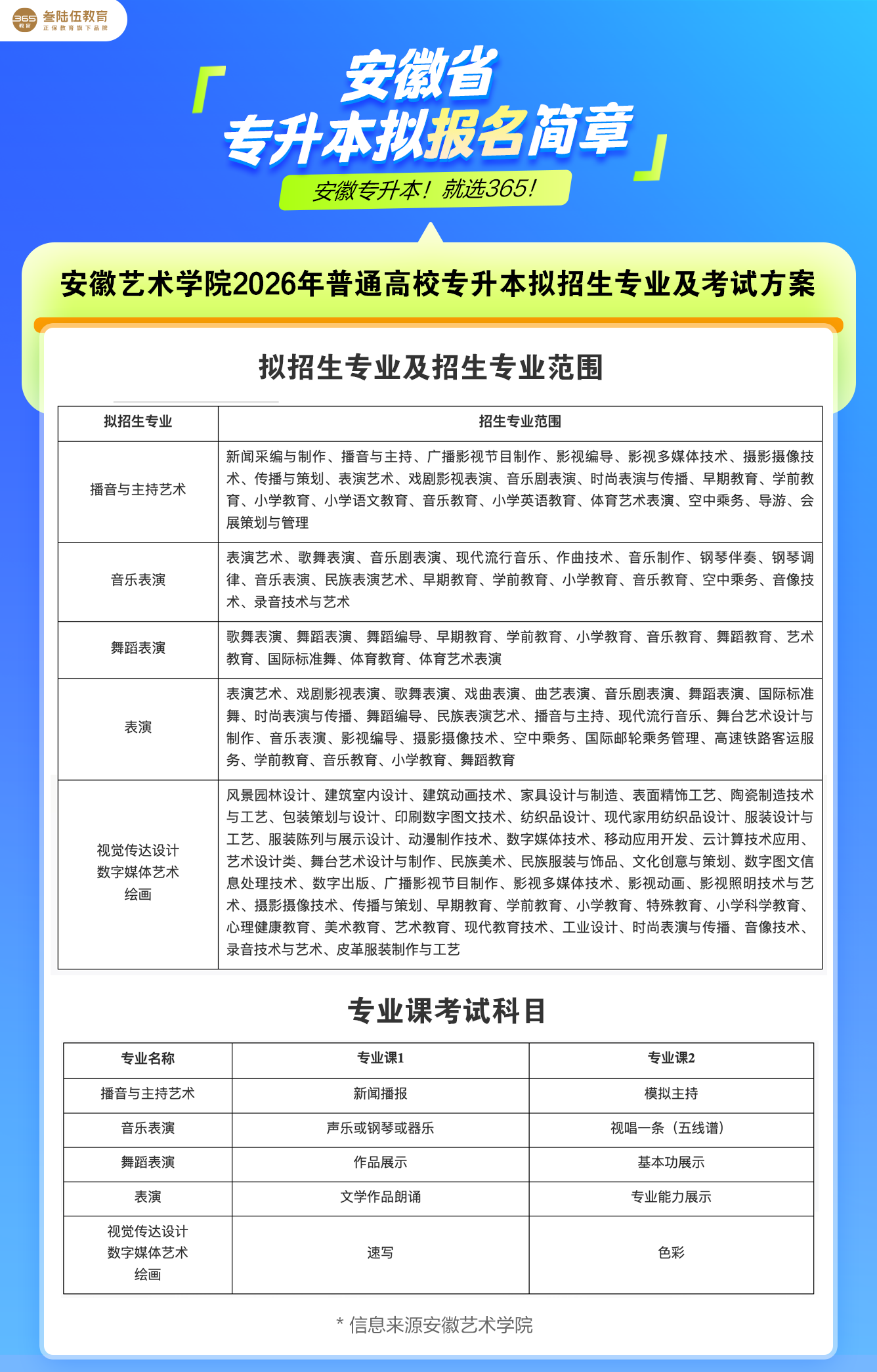 安徽藝術(shù)學(xué)院2026年普通高校專升本招生方案(擬)