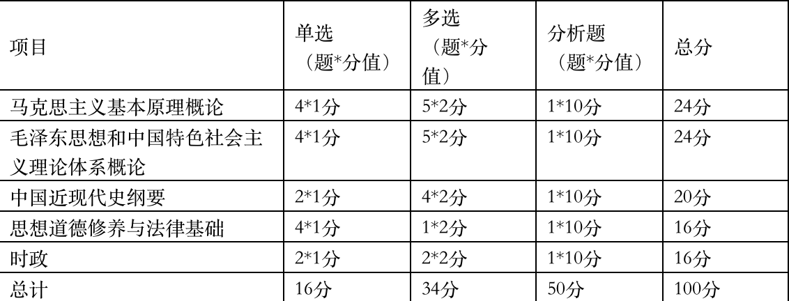 政治5門試卷結(jié)構(gòu)及分值分布如上表