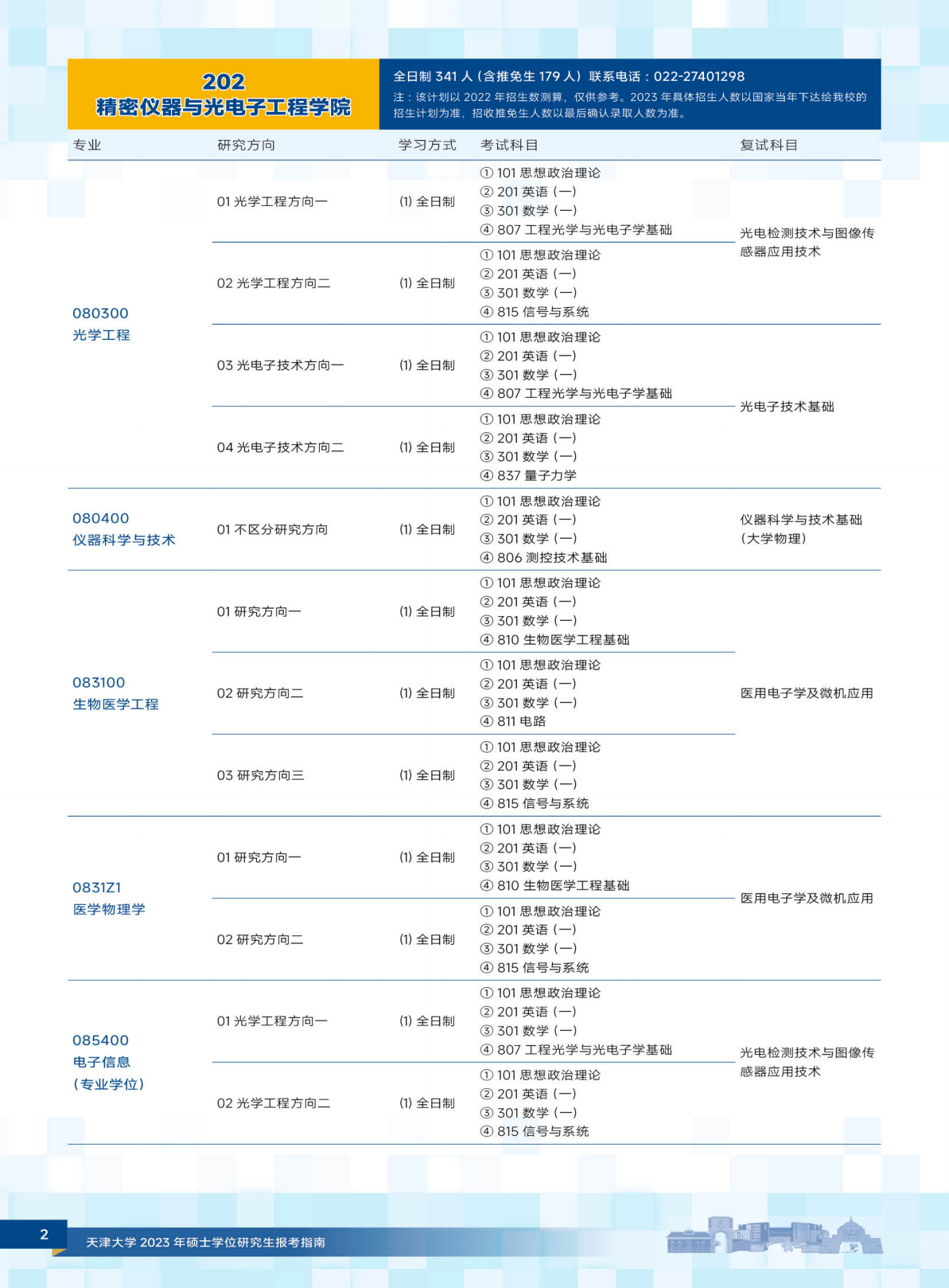 - 天津大學(xué)2023年碩士學(xué)位研究生招生簡章及專業(yè)目錄
